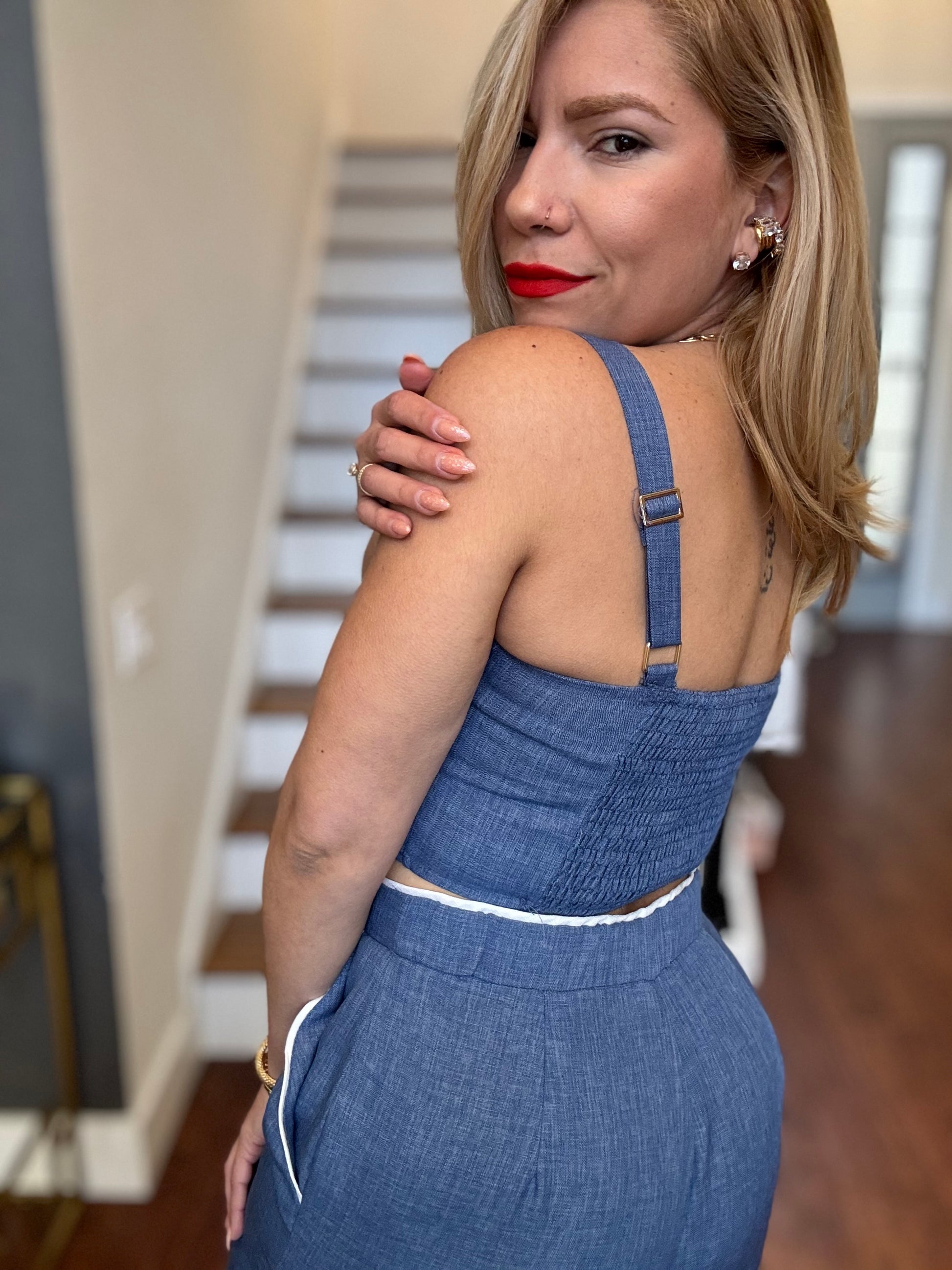 Talla utilizada Small. Estatura 5'3. Corre al size. Ajusta en tirantes. Tiene spandex en la cintura y parte atras del top