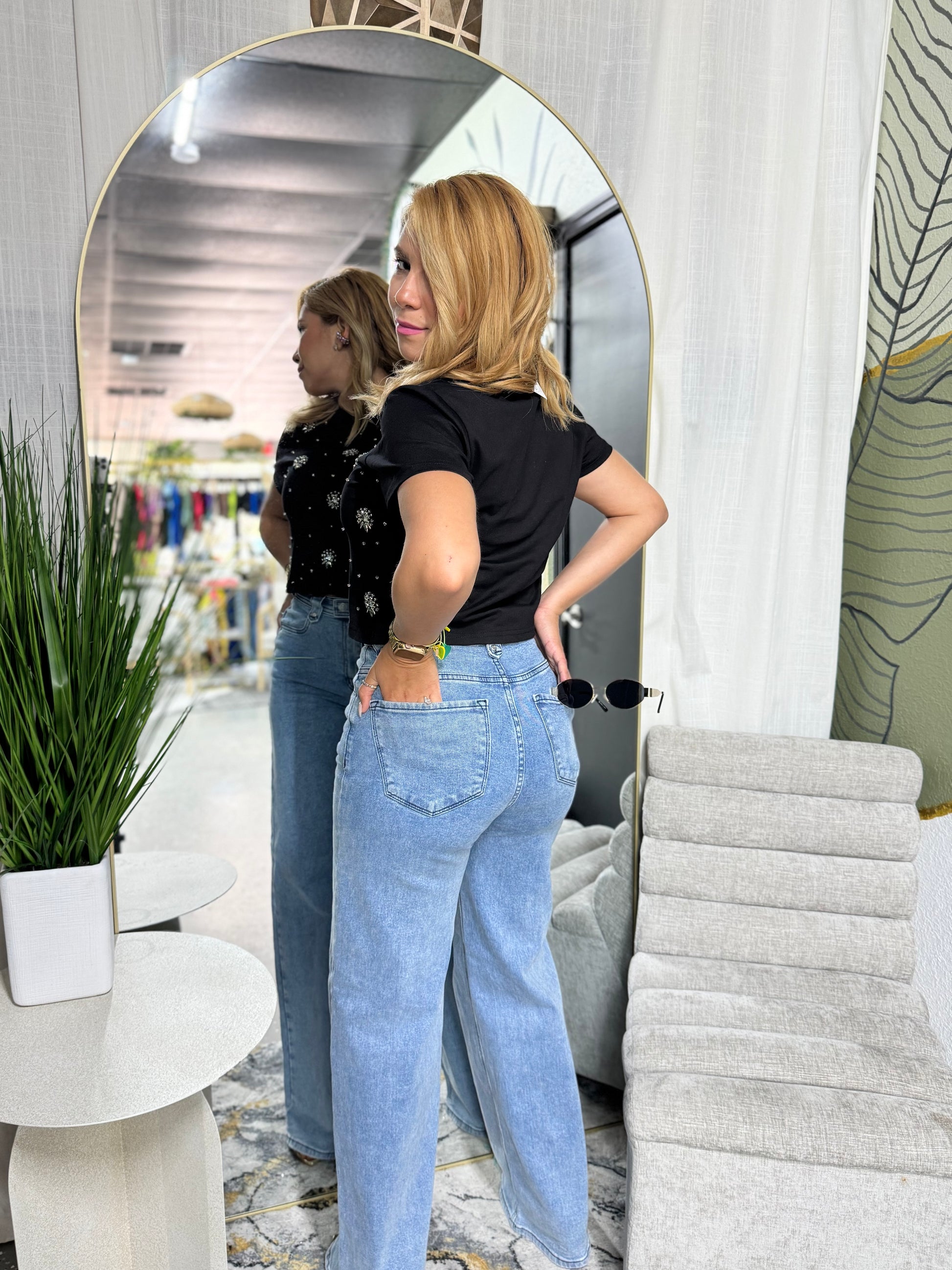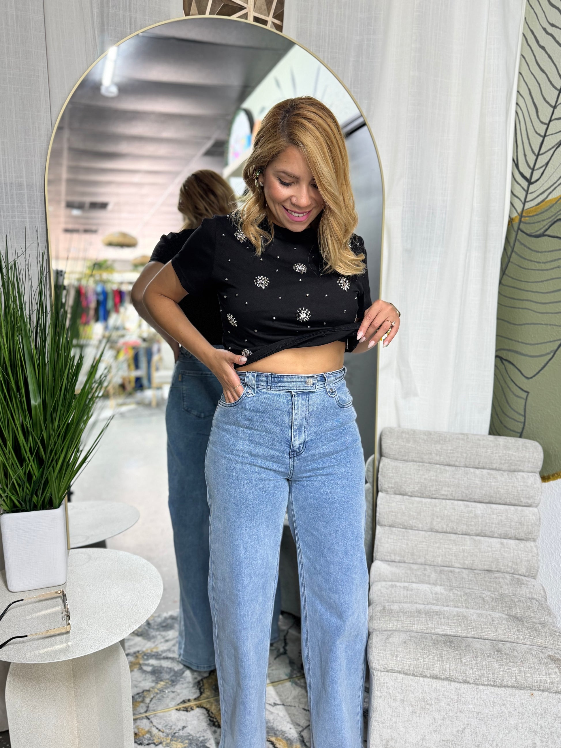 Tela con alta calidad . Tela comoda y fresca. Es un jean donde te sientes hermosa siempre.