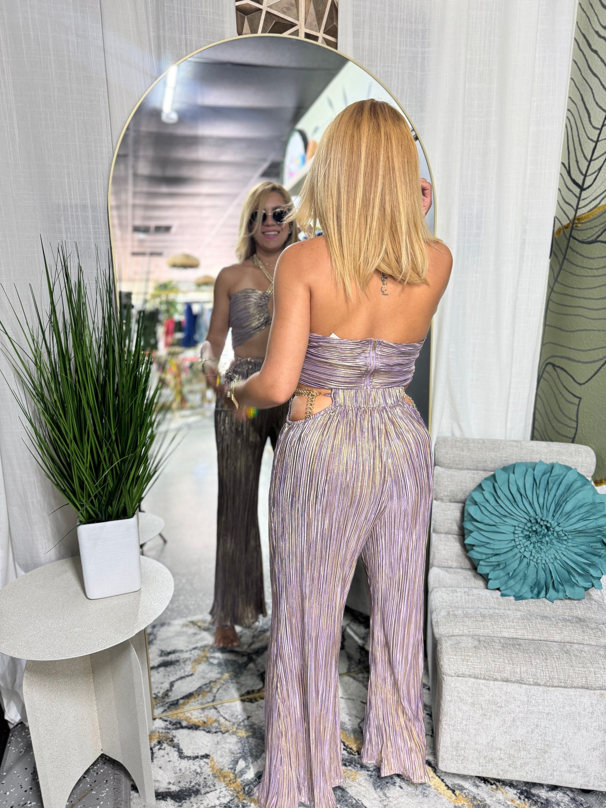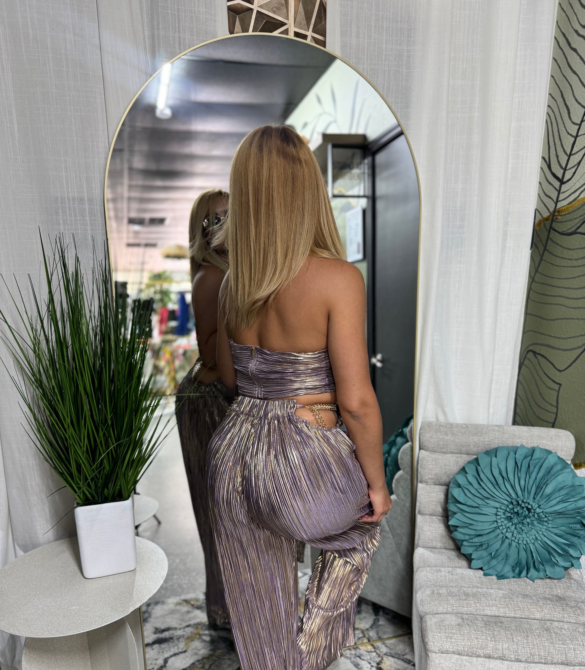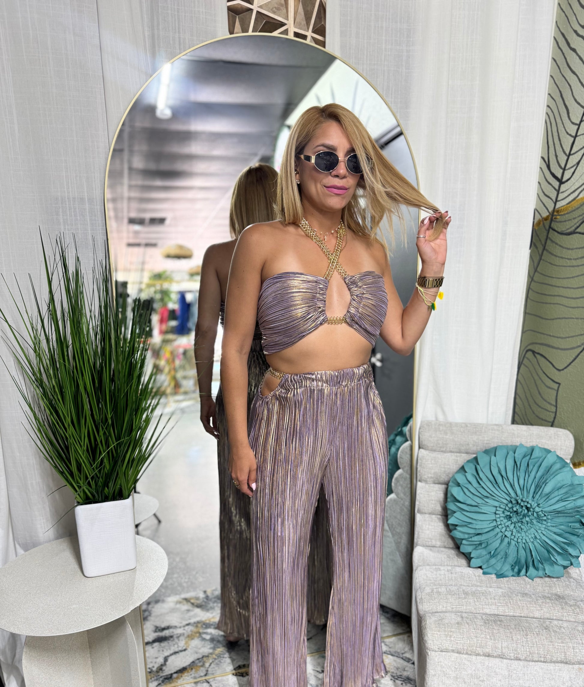 Talla utilizada SMALL. Estatura 5'3. Tiene stretch, Ajusta tanto en el cuello cpmp en la cintura. Las cadenas las ajustas como gustes.